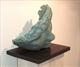 A sculpture of a carved wooden head, an abstract tranquil contemporary face with serene closed eyes, hollowed out and mounted on slate - so called as carved from the same tree-trunk as the Andrew Motion Poet Laureate portrait for the National Portrait Gallery. Now cast in bronze.